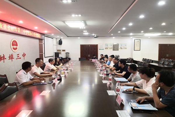 6月29日,党委书记蒋德勤一行赴优质生源基地中学开展校际交流,深入调研2021年高考生源情况并指导招生宣传工作,受到蚌埠市第三中学党委副书记龚克明、副校长陈虎等的热情接待。