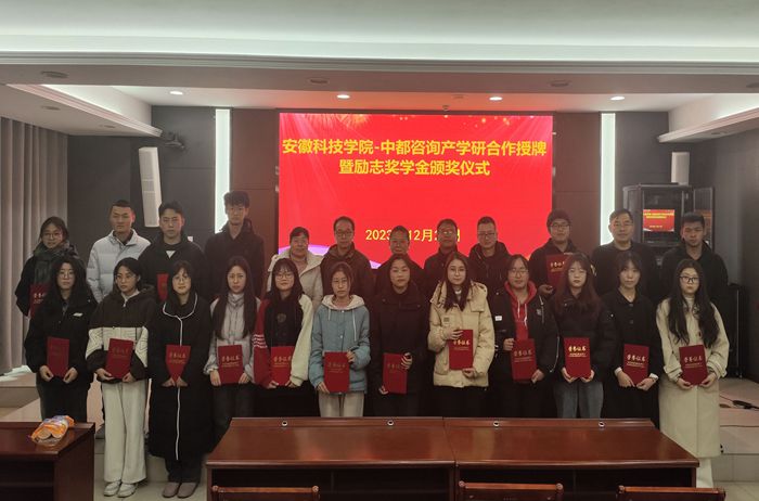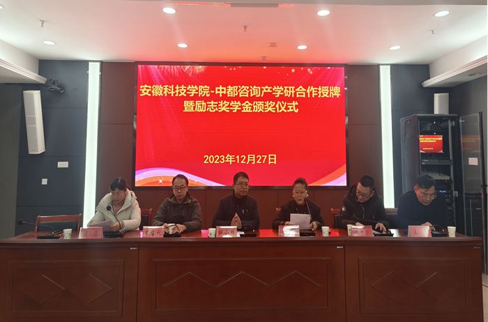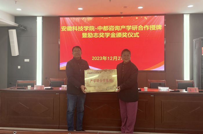 会上,杜小明为凤阳县中都项目咨询有限公司授予“拼搏平台产学研合作基地”牌匾;刘芳宣读“中都咨询优秀奖学金”获奖名单并颁发了荣誉证书;金融工程专业221班刘海洋同学代表获奖学生发言。