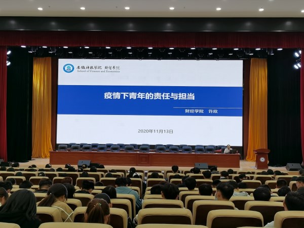 为弘扬伟大的抗疫精神,增强青年大学生的责任与担当,11月15日下午,财经学院在龙湖校区综合信息中心东辅楼报告厅举办抗疫精神暨爱国主义教育报告会,报告由院党总支秘书许欣主讲,2020级全体新生到场参会。