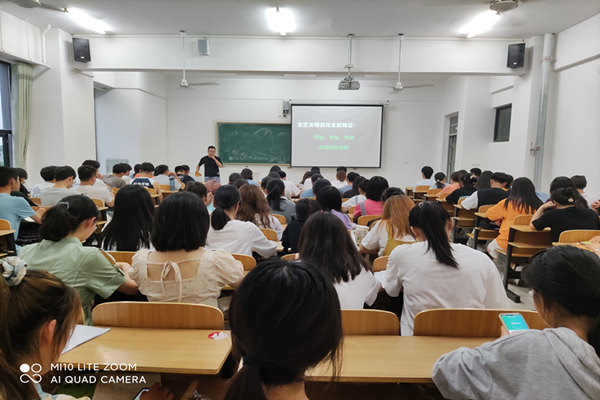 为教育引导在校学生节能、节水、节约粮食,切实推进绿色学校创建工作,6月15日晚,财经学院在致知楼C105开展生态文明教育主题宣讲活动,财经学院专职辅导员朱中军担任主讲。