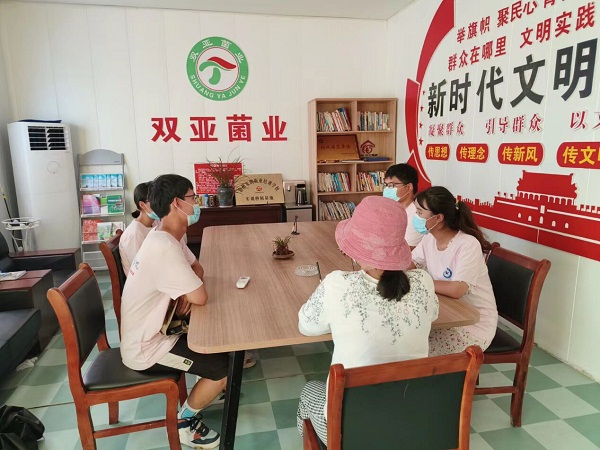 8月6日上午,在队长林志勇的带领下,团队成员到达邱庙村后,邱庙村党支部书记魏广渊带领团队参观了村支部的建设以及近年来村支部获得的成绩,在提及特色产业时,魏广渊表示邱庙村作为“乡村振兴示范村”特色产业主要有食用菌产业及黄牛产业,食用菌产业自2019年开展,当时扶贫尚未结束,食用菌产业在邱庙村的脱贫路上起到较大的推进作用,现阶段食用菌种植面积还在逐渐扩大,在国家的扶持下村民的生活越来越好。如今村民对美好生活的期待值增加,食用菌产业所获得的收入越来越多,村民对于种植蘑菇积极性很高,可在种植过程中,会出现许多技术问题,农民无法解决,相关技术人员又太少,这是阻碍现阶段发展的重大问题。对此我们团队也表示,在拼搏平台内有许多食用菌种植方面的专家,如果有相关技术问题可以通过电话询问。