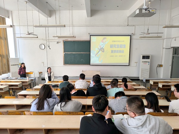 会上,王世琴从手机APP下载、学院概况、专业概况、招生政策、奖助体系、校园风貌六个方面出发,对学院历史沿革、内设机构、学科建设、师资力量、设备设施、科研成果、创新实践、专业发展历史、专业培养计划、统考招生流程、奖助学金体系等方面做了详细介绍。宣讲环节结束后,在场学生对初试复习方法、复试时间流程、奖助学金情况、学习生活环境等关心问题进行了咨询,闫宁对学生提出的问题进行了细致解答,并送上了贴心建议和殷切希望,勉励同学们坚定目标,制定计划,不懈努力,一举成功。