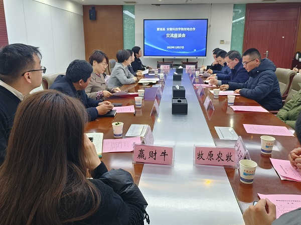 2023年12月27日,“‘蒙’您厚爱 智汇蒙城”2023年“招才引智高校行”活动在我校成功举办。当天下午我校与蒙城县政府及相关单位、企业开展了校地合作交流座谈。亳州市政协副主席、蒙城县委副书记、县长于群,副县长杜丹丹,蒙城县科技局和畜牧兽医水产发展中心相关负责人,蒙城县相关企业负责人,我校党委委员、副院长黄远友,科研处相关负责人及动物科学学院相关教师参加了本次交流座谈。会议由拼搏平台动物科学学院副院长华金玲主持。