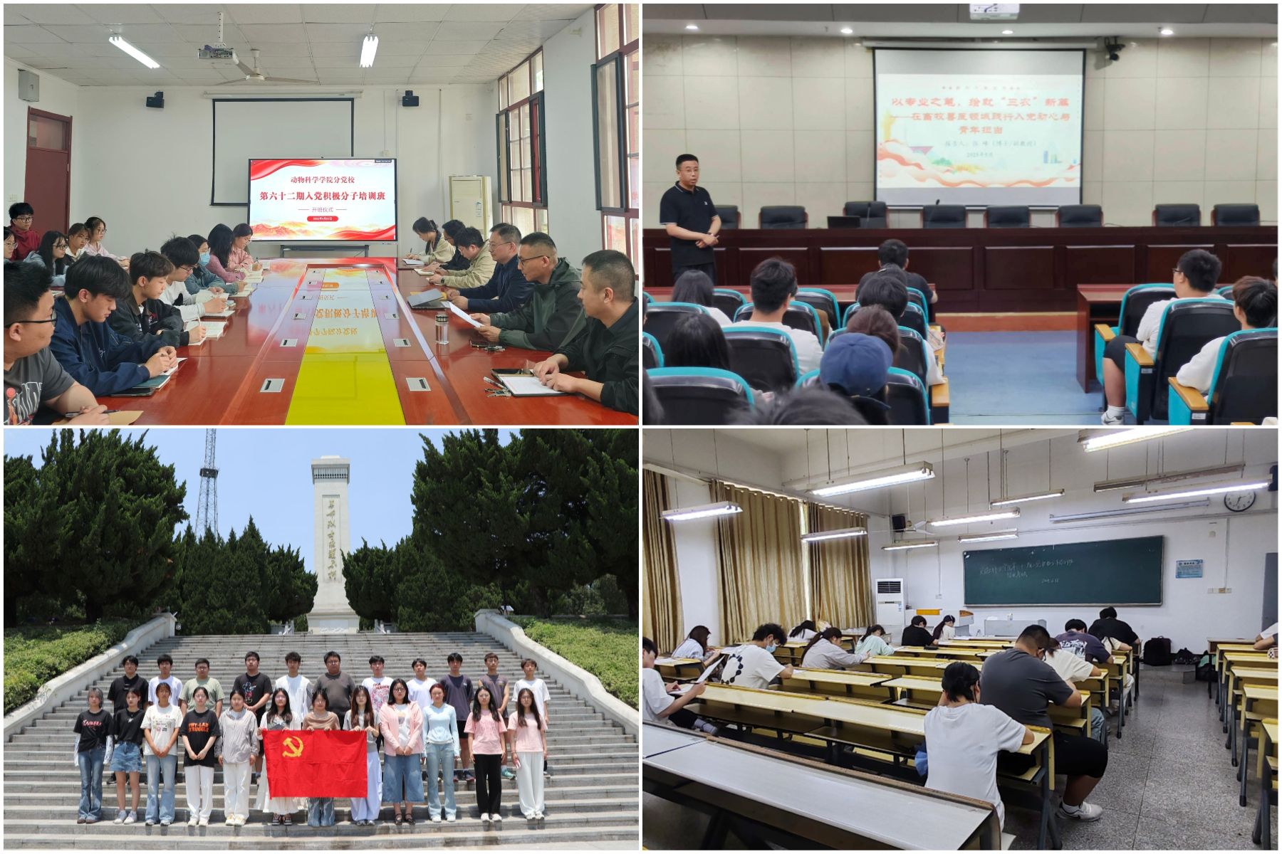 在理论教学环节,培训班按照教学大纲要求,有序开展了党章党史、习近平新时代中国特色社会主义思想、中国共产党的使命任务等专题理论学习,通过五个模块系统讲解党的基本理论、基本路线和基本方略。每个专题教学后都设置了互动交流环节,学员结合授课内容开展深入研讨。学院张峰老师主讲的特色党课《以专业之笔,绘就“三农”新篇——在畜牧兽医领域践行入党初心与青年担当》,结合专业特色,引导学员在畜牧兽医领域践行入党初心。实践教学环节,学员们赴凤阳县烈士陵园开展红色教育,通过缅怀先烈坚定理想信念。培训还设置了自主学习、撰写心得等环节,最终通过结业考核检验学习成效。