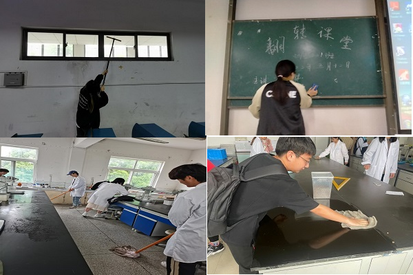 一是开展食堂帮厨劳动实践活动。为教育引导学生养成热爱劳动、珍惜粮食、杜绝浪费的良好习惯,安排各班级于5月11日—5月31日在东区一楼黄山大厦开展食堂帮厨劳动实践活动。各班在食堂经理的安排下有序到达各自岗位,认真完成分配的任务;二是组织开展集体劳动实践活动。各班级有序组织在教学楼、学院实验室、兽医院、各班分管的青年林等场地开展清扫活动,通过劳动实践把为同学服务的理念内化于心,外化于行,为文明校园创建贡献力量;三是开展“光盘打卡 青年一起向未来”活动。进一步引导广大青年学习宣传贯彻习近平生态文明思想,贯彻落实习近平总书记关于制止餐饮浪费的重要指示批示精神,自觉养成勤俭节约、珍惜粮食的绿色低碳生活习惯。此外,各班级开展了“光盘行动”团日活动;四是组织开展居家劳动实践活动。各班级各寝室组织集体大扫除,排查安全隐患,共同创建整洁文明的学习和生活环境。五是组织学生参加英雄模范事迹报告会,教育引导学生争做新时代的奋斗者。