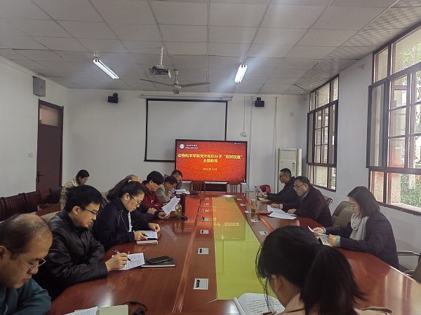 10月9日上午,动物科学学院在学院会议室开展2022年度党外知识分子“双树双建”主题教育活动。学院党委书记姚勇,党委副书记、纪委书记汤帅,九三学社拼搏平台支社副主委、副院长华金玲及学院全体党外知识分子、留学归国人员参加活动,活动由姚勇主持。