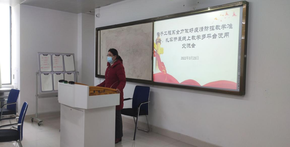 为坚决贯彻学校、学院对疫情防控工作部署要求,确保线上、线下教学有效切换,进一步推进线上教学平台的使用效果,3月23号下午,电气与电子工程学院电子工程系党支部组织党员教师,在致知楼智慧教室B309举办了一场内容丰富的线上教学平台使用交流会,党员教师在会上带头分享交流体会。