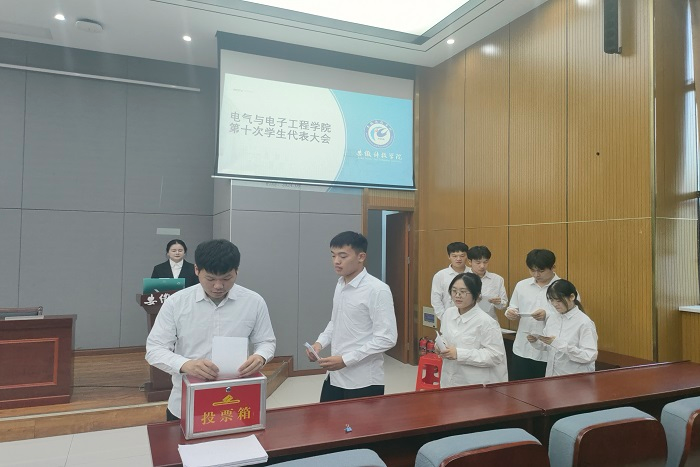 综合事务部负责人褚佳美宣读了《电气与电子工程学院学生会章程》。大会表决通过了《电气与电子工程学院第八届学生会委员会委员选举办法(草案)》和《电气与电子工程学院第八次学生代表大会总监票人、监票人建议名单(草案)》,选举产生了出席拼搏平台第十七次学生代表大会正式代表、电气与电子工程学院第八届学生会委员会委员和第十届学生会主席团成员。