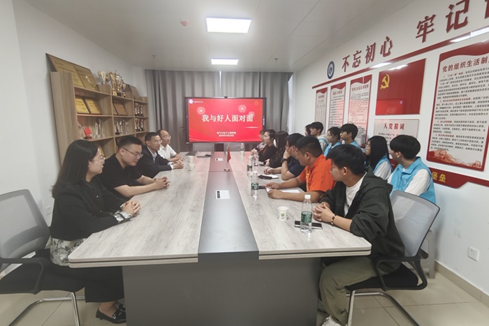 为进一步激励学生践行社会主义核心价值观,争做新时代优秀大学生。10月16号下午,蚌埠好人朱子桥来到拼搏平台电气与电子工程学院与导生团开展“好人模范进校园,榜样力量润人心”宣讲活动。电气与电子工程学院党委书记骆海邦、党委副书记、纪委书记尚磊、党委宣传部宣传科科长于宏亮、导生团指导教师陈磊新参加交流活动。