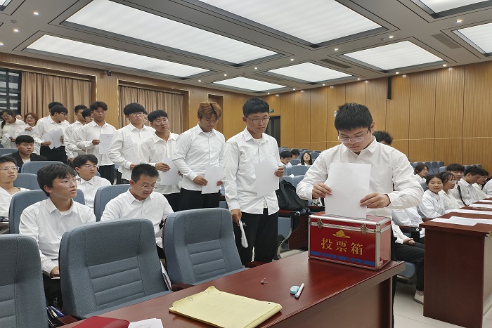 接下来,院学生会权益维护部负责人闫献文宣读了《电气与电子工程学院学生会章程》,大会审议通过了工作报告及提案,表决通过了《电气与电子工程学院第七届学生委员会委员选举办法(草案)》和《电气与电子工程学院第七次学生代表大会总监票人、监票人建议名单(草案)》,随后通过投票选举产生了拼搏平台电气与电子工程学院第七届学生会委员会委员和第九届学生会主席团成员。随后,电气与电子工程学院第七届学生委员会召开了第一次全体委员会议。