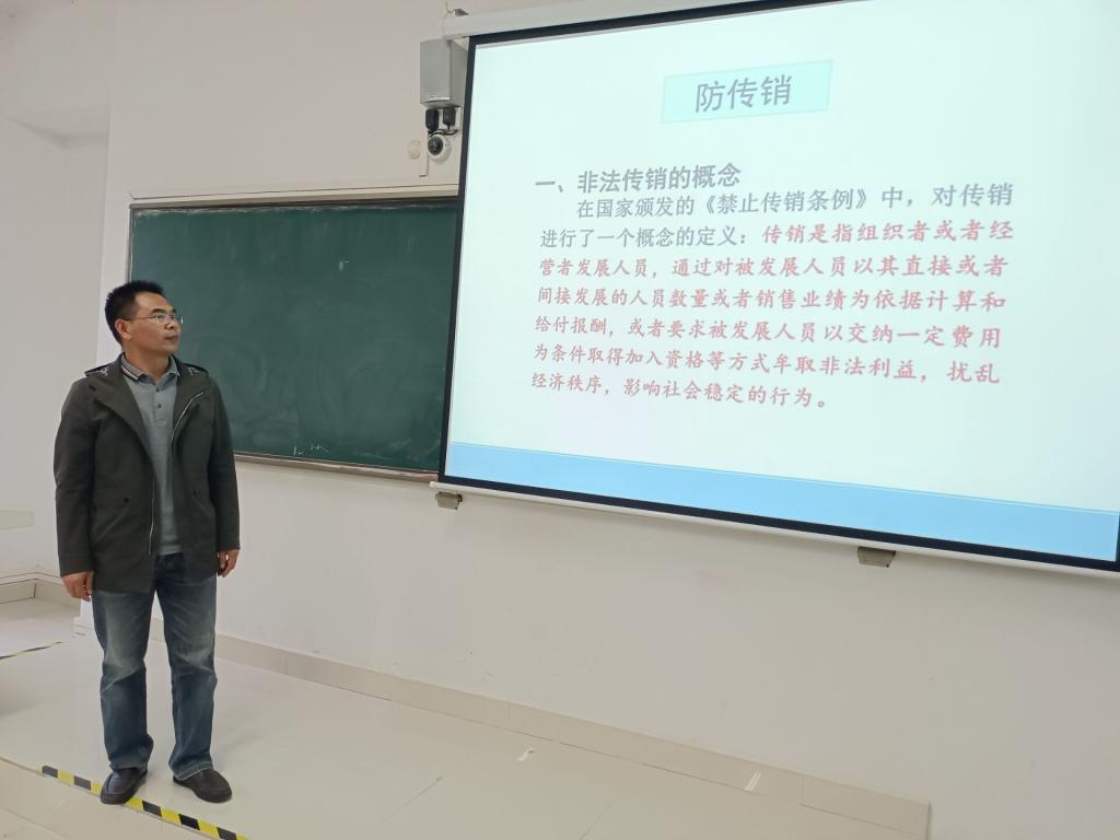 为进一步增强大学生安全意识,保障大学生人身财产安全,3月18日下午,电气与电子工程学院于致知楼A105开展大学生安全教育讲座。讲座由电气与电子工程学院辅导员、军事理论与安全教育教研室教师陈更强担任主讲,学院20级部分学生参与讲座。