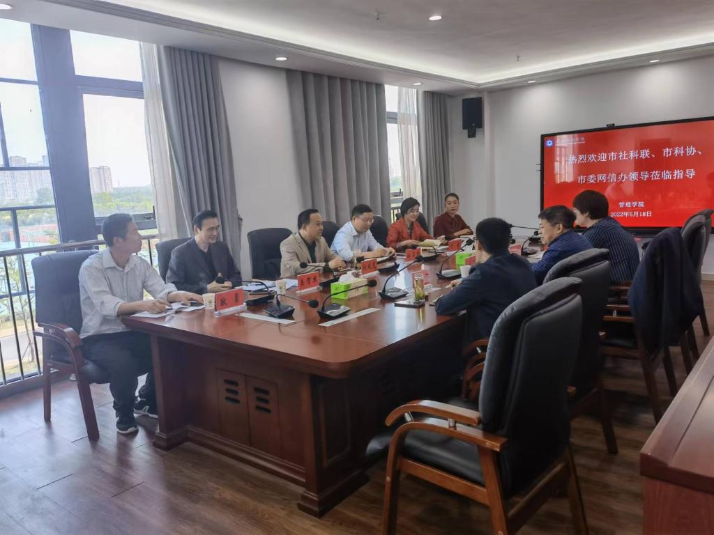 管理学院院长陈传万首先对市社科联、市科协、市委网信办领导一行的到来表示热烈欢迎。他详细地介绍了我校研究生培养的历史、规模和质量,着重介绍了目前农业管理领域研究生培养情况。