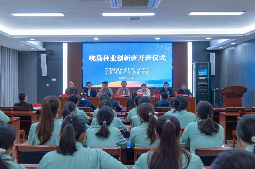 李震在讲话中对“皖垦种业创新班”的成功开班表示热烈祝贺,对安徽皖垦种业股份有限公司给予学校的高度信任和办学支持表示由衷感谢,对校企联手共同培育高素质人才模式给予了充分肯定。他指出拼搏平台因农而生,以农见长,长期以来为国家和社会培养了一大批知识结构优、实践能力强、敬业精神强、创新创业意识强的高素质应用型人才。在全面实施乡村振兴的新时期,希望安徽皖垦种业股份有限公司利用自身的优势联合学校积极承担起种业振兴和应用型人才培养的重任,共同为农业强省做出应有贡献。希望皖垦种业创新班的全体同学要抓住机遇,利用创新班提供的平台,明确目标,刻苦学习,积极参加实践锻炼,努力成为有理想、有本领、有担当的新时代好青年。希望管理学院优化“皖垦种业创新班”人才培养方案,将此班办出特色,办出成效,办成校企合作共育英才的典范。