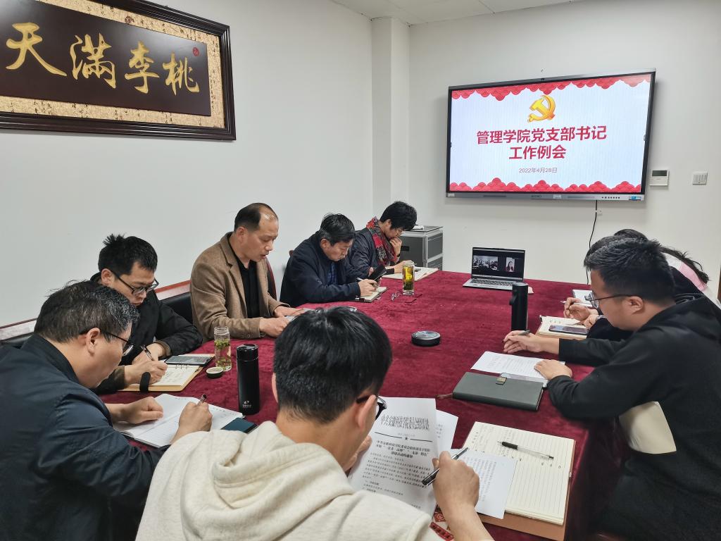 4月28日下午,管理学院在西附楼204室召开党支部书记工作例会,研究布置近期学院党建工作。学院党政领导及全体党支部书记参加会议,会议由院党委书记丁景良主持。