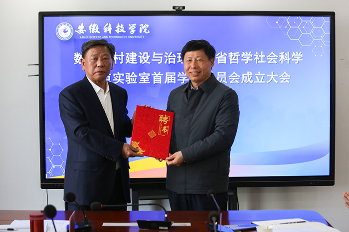 成立大会上,时伟代表学校发表热情洋溢的欢迎辞,他对各位专家百忙之中拨冗参加会议表示感谢,并向来宾简要介绍我校基本情况,以及“数字乡村建设与治理”特色学科的建设规划和阶段成果,并向学术委员会主任委员杨善林院士及学术委员会委员梁昌勇教授、刘志迎教授和孟枫平教授颁发聘书。王孝义宣读重点实验室学术委员会委员聘任文件。