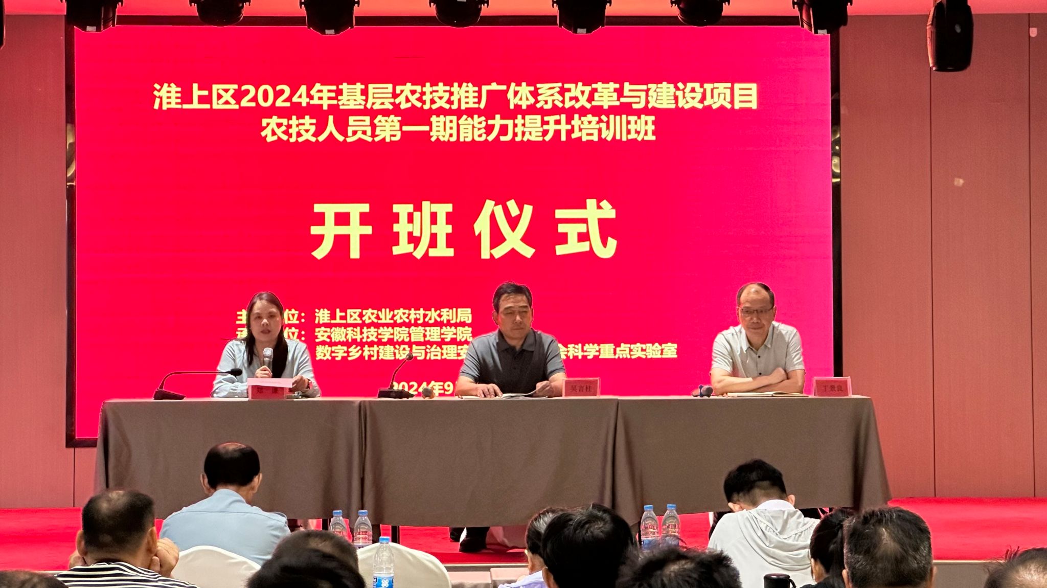 为深化基层农技推广体系改革,提升农技人员综合素质,助力蚌埠市乡村振兴。9月18日上午,由淮上区农业农村水利局主办,拼搏平台管理学院及数字乡村建设与安徽省哲学社会科学重点实验室联合承办的“淮上区2024年基层农技推广体系改革与建设项目农技人员第一期能力提升培训班”在蚌埠市淮上区举办开班仪式。淮上区农业综合服务站站长吴言柱,管理学院党委书记丁景良,副院长郑谦出席开班仪式,开班仪式由丁景良主持。