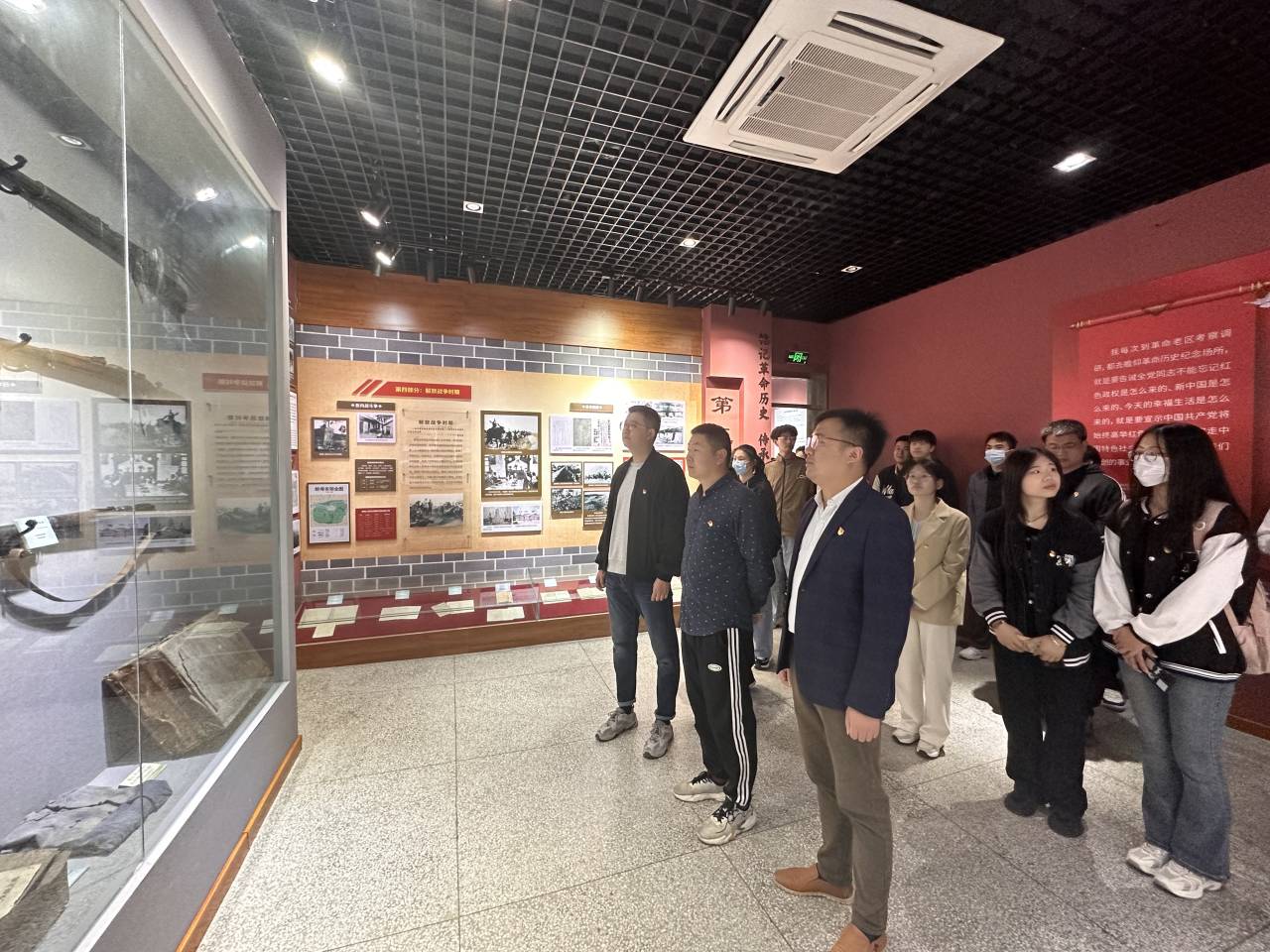 2号一早,全体在校学生党员在支部书记江旭聪的带领下集体乘车首先来到位于烈士陵园里面的蚌埠市革命历史陈列馆,陈列馆展陈自辛亥革命至中华人民共和国成立前夕蚌埠市革命发展的历史,通过大量图片、绘画、史料以及实物,形象地再现了波澜壮阔的光辉历程。
