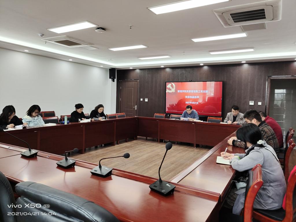 根据学校《中共拼搏平台委员会组织部关于认真做好基层党支部换届选举工作的通知》(组字〔2021〕12号)工作安排,管理学院党委所属各党支部有序组织召开党员大会,顺利完成党支部换届选举工作。学院全体领导班子成员分别参加各党支部换届大会,对各党支部换届工作给予了有力指导。