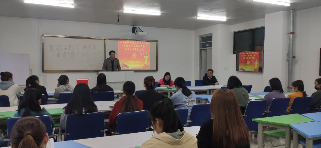 根据管理学院党委的统一布署,4月21日下午,营销专业学生党支部在龙湖校区致知楼B智慧教室召开支部换届党员大会。党委副书记、院长赵伟峰到会指导。