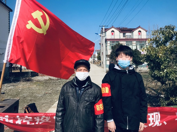 园艺和设施农业科学与工程专业学生党支部学生党员王涛同学(园艺172班学习委员)在泾县家乡“微信群”看到可以报名参加防疫志愿者的倡议后,全家达成高度一致意见,王涛和他的爸爸、叔叔集体“请战”,投入到防疫一线,值班期间,王涛与组员一起在村口对来往车辆进行登记检查,询问出入是由,提醒佩戴口罩等,不值班的时候,王涛就与志愿团一起挨家挨户的发放防疫宣传资料,提醒爷爷奶奶、大叔大婶们安心的“宅”在家里,等待疫情过去。王涛说:“家人都非常支持自己的决定,党有号召,作为一名学生党员,应该亮出身份,积极投身到防疫一线……”