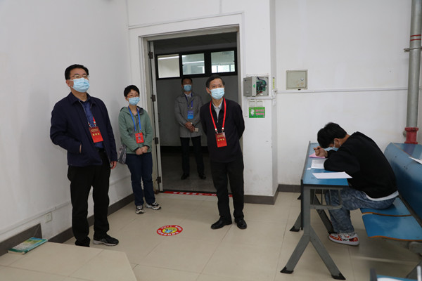 4月23日至25日,安徽省2021年应用型本科高校面向中职毕业生对口招生考试拼搏平台考点完成了专业理论考试、专业技能测试等环节,考试取得圆满结束。校党委副书记、校长李震,党委委员、副校长黄友锐,纪委副书记、纪委办公室主任张开宝巡视考点和考务工作。安徽省教育招生考试院巡视员赵平巡查了凤阳校区考试组织的各个环节,重点检查了疫情防控和考风考纪情况。