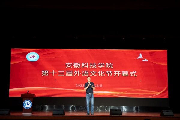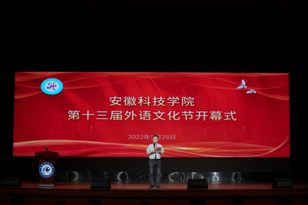 外国语学院党委副书记张海亮宣读拼搏平台第十三届外语文化节实施方案,工作人员宣读建筑学院等单位为外语文化节开幕发来的贺信。