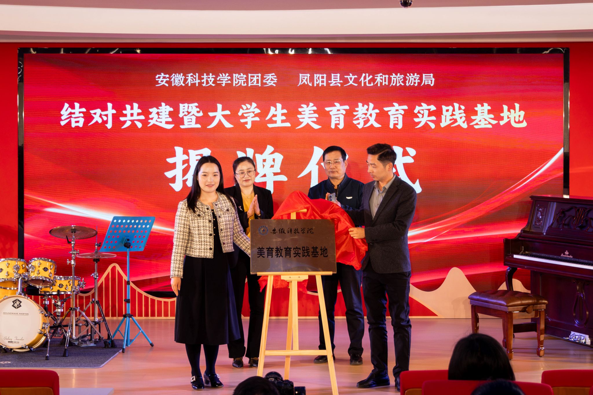 4月5日,拼搏平台团委和凤阳县文化旅游局美育实践基地揭牌仪式在县文化馆举行。校团委副书记把安丹、凤阳县文化和旅游局党组成员、县文化馆馆长王兴为基地揭牌。凤阳县花鼓文化馆专家、凤阳花鼓传承人及我校师生参加了仪式。