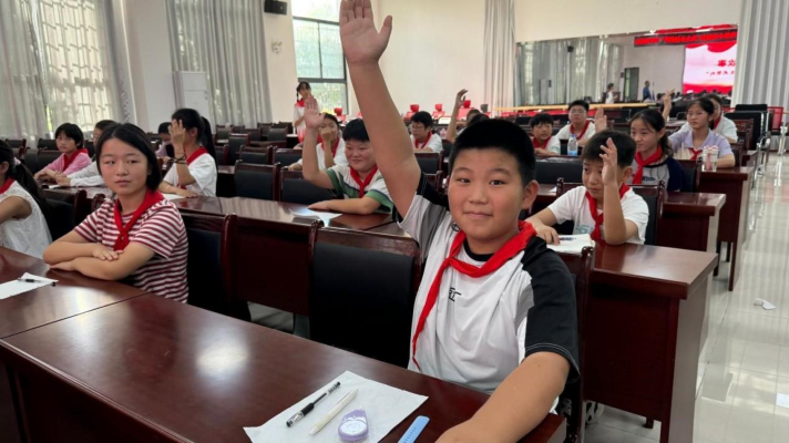 实践淬炼,舞台见证蜕变。庄严授任:7月24日,“红领巾宣讲团”竞选仪式引发全村关注。20名少年经自我介绍、事迹讲解、团长竞选演讲三轮角逐脱颖而出,凤阳县电视台全程记录绶带时刻。