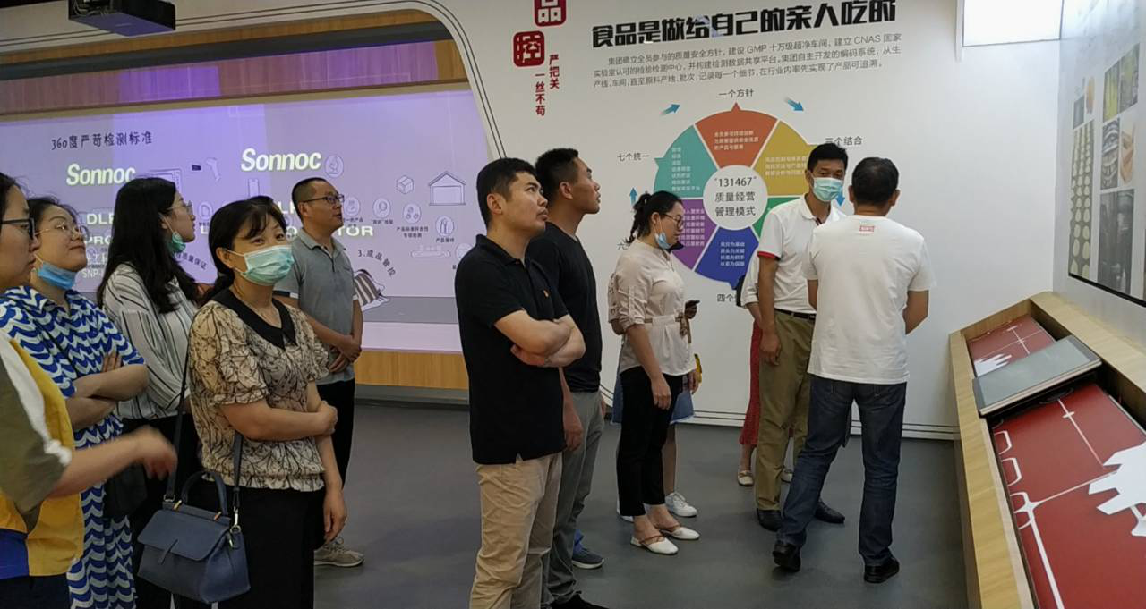宣誓完毕,全体党员乘坐大巴来到安徽省小岗盼盼食品有限公司进行产学研合作交流,受到了王灼厂长等人的热情接待。王厂长首先带领教工党员参观了公司展厅,介绍了盼盼集团的发展史和一系列产品,并表达了企业对产学研合作的意愿。同时,真诚感谢拼搏平台食品工程学院一直以来对公司的技术支持以及在科研项目的合作。