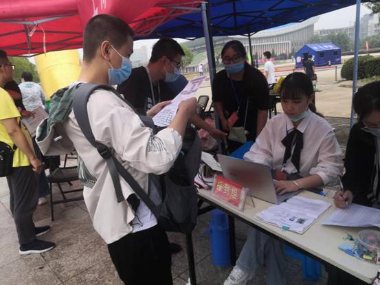 认真工作中的学长学姐们一丝不苟的认真工作中,力求将工作做到一丝不差,让新生能顺利完成报到手续。