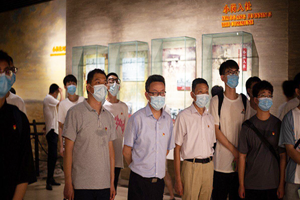 参观大包干纪念馆期间,在讲解员的引导下,大家认真参观、学习了解小岗村发展的溯源、抉择、贡献、巨变、崛起、关爱六个部分的图文史料。大包干纪念馆呈现了当年大包干从酝酿到发生、再到新时代发展飞跃的历史,以及各级领导、媒体、友人对小岗村的关心和支持。通过参观学习馆内这些珍贵的历史资料,在场的师生党员仿佛一起回到了1978年11月24日深夜,看到18名小岗村农民秘密召开会议,冒着“坐牢杀头”的风险,毅然决绝地按下红手印,搞起包产到户,就此掀开中国农村改革的历史序幕。