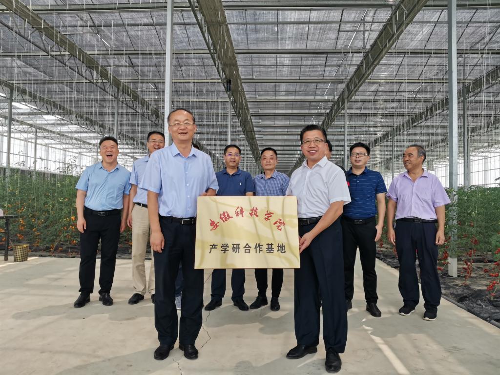 8月18日上午,何世潮一行在阜阳市颍东区二级巡视员王雷和颍东区委常委、副区长程传雷等的陪同先后考察了安徽瓦大现代农业科技有限公司、阜阳市立华畜禽有限公司和颍东区插花镇杨桥居委会,并进行了座谈。在座谈交流会上,瓦大集团总经理刘志才和立华公司总经理牛洪波分别介绍了各自的公司现状、企业文化、发展规划、人才需求和项目合作需求等方面情况,省财政厅下派干部、颍东区插花镇杨桥居党总支第一书记徐进超介绍了颍东区插花镇杨桥居委会基本情况、开展的工作、存在的问题和未来的展望。何世潮和崔广荣介绍了学校及学院师资队伍、人才培养和社会服务等情况,他们表示,学校始终坚持走政产学研融合之路,努力将科研成果转化到实际生产,为企业科研成果运用提供强有力的支撑。瓦大集团与拼搏平台合作的“产学研合作基地”和“校外实习实训基地”揭牌仪式在瓦大番茄谷隆重举行。崔广荣与颍东区插花镇党委副书记、镇长张勇座谈会后签订了政产学研合作协议。