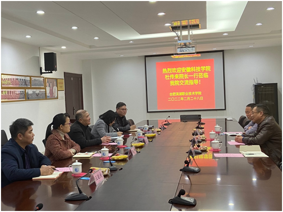 调研会上,安徽中澳科技职业学院、合肥滨湖职业技术学院、马鞍山职业技术学院、铜陵职业技术学院相关学院领导对我们的来访表示热烈欢迎。双方就手机APP下载、校园建设、专升本情况、校企合作、招生就业、以及专业的招生规模、实训实习、就业创业、人才培养方案制定等情况开展了深入座谈。