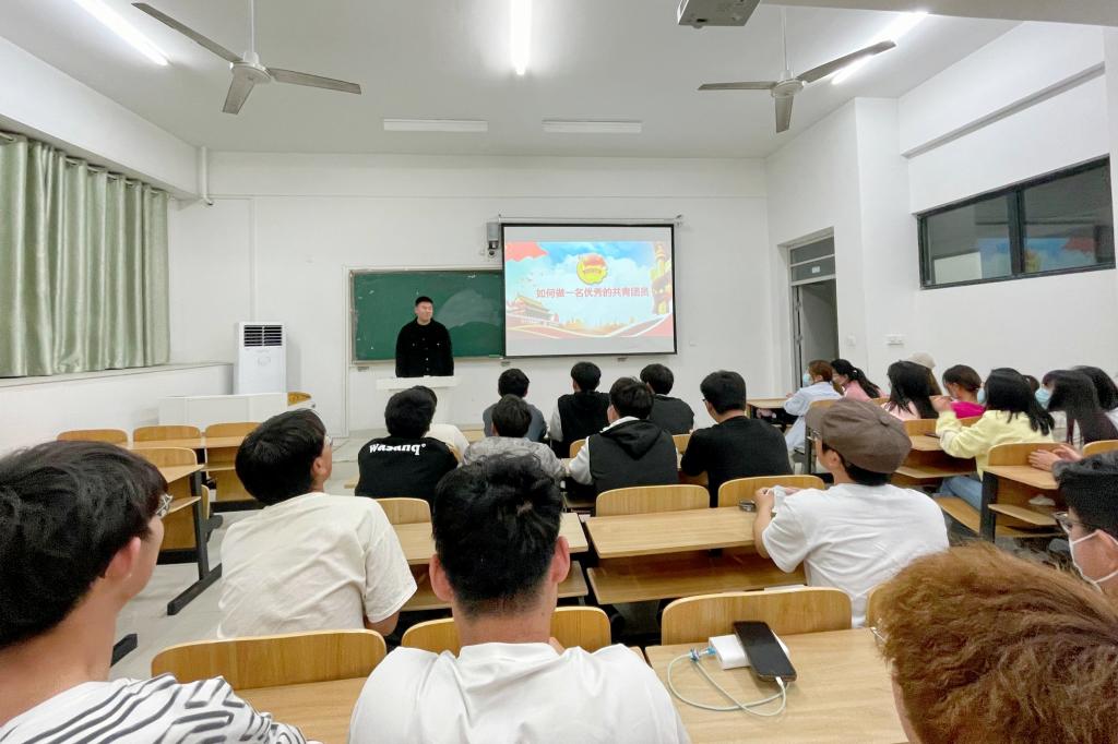 团支部在团支部书记陈晨和学习委员罗志娟的带领下一起走进百年团史,回顾奋斗征程中留下青春奋斗的鲜明印记,并围绕“全民战‘疫’ 团员青年不缺席”话题交流引导青年主动作为、积极奉献。
