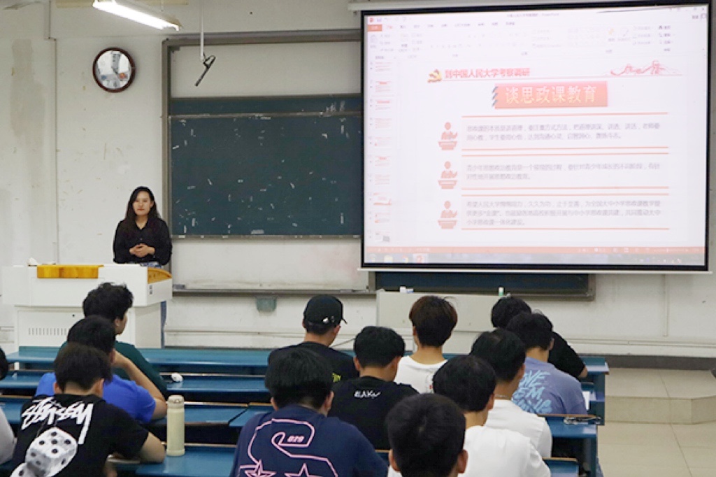 为积极响应习近平总书记对新时代大学生的号召,传承红色基因,扎根中国大地,走中国特色大学建设之路,同时扎实推进我校辅导员与思政理论课教师结对共建工作,2022年5月25日,机械工程学院在新知楼B101教室举办“习近平总书记在中国人民大学考察时重要讲话精神”专题学习讲座。本次专题讲座由马克思主义学院院长张德化教授指导,机械工程学院专职辅导员姚迪主讲,机械工程学院第56期入党积极分子培训班学员和今年上半年新发展预备党员共计111名同学参加学习。