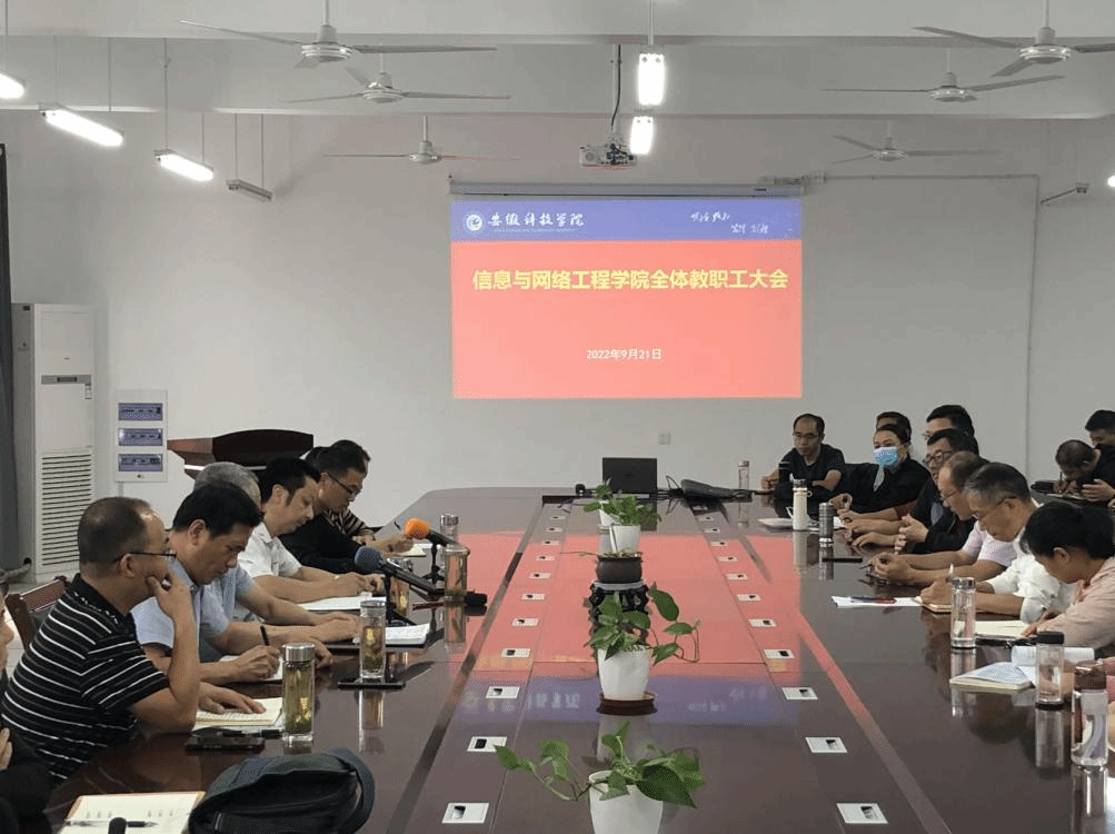 为部署推进新学期重点工作,高质量完成年度目标任务,2022年9月21日下午,学院党委副书记、院长余宏杰,正处级组织员周向群,党委副书记、纪委书记韦乃学,副院长何恩节,副院长曹浩及全体教职工参加会议,会议由院党委书记王振其主持。