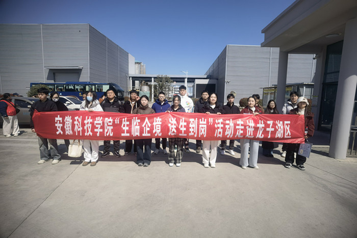 为搭建就业市场供需精准对接平台,3月18日,学校联合蚌埠市龙子湖总工会开展“生临企境 送生到岗”活动,龙湖校区35名意愿留蚌就业创业的毕业生参与本次活动。