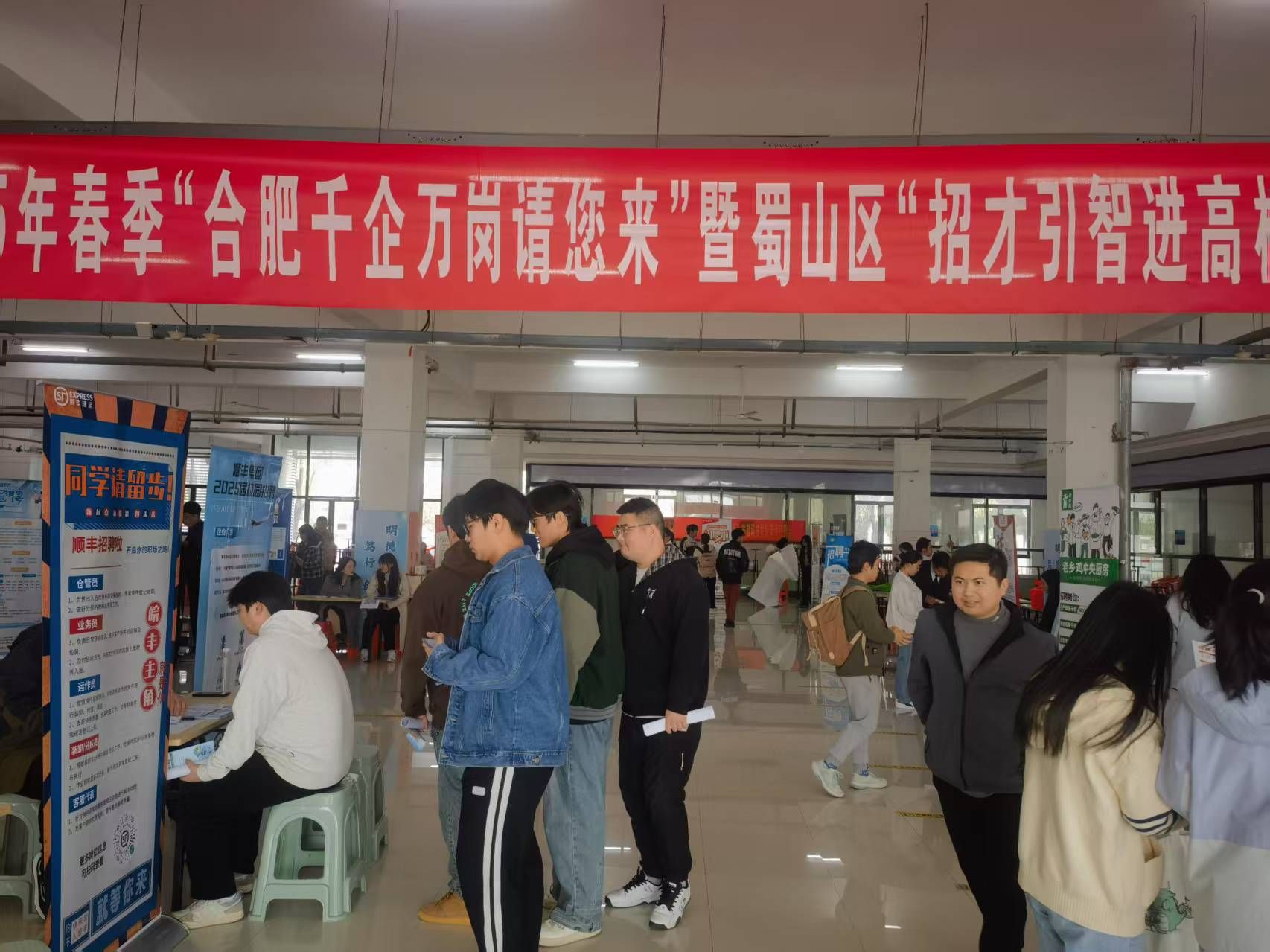 为进一步深化校地人才交流合作,4月2日上午,我校联合合肥市蜀山区人力资源和社会保障局在龙湖校区举办2025年春季“合肥千企万岗请您来”暨蜀山区“招才引智进高校”拼搏平台专场招聘会。