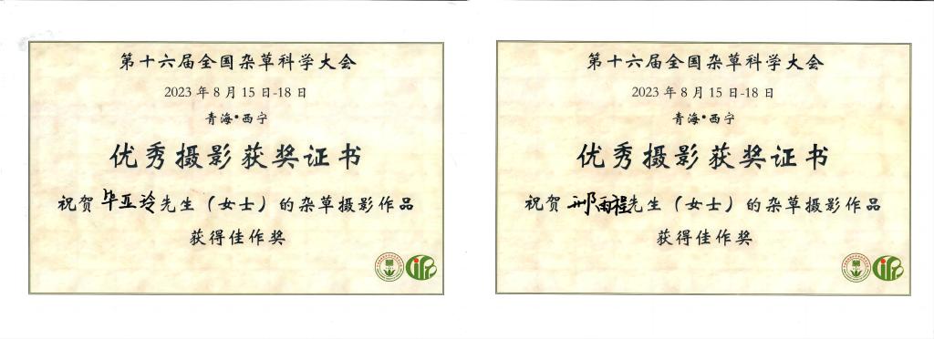 根据大会日程安排,毕亚玲作了题为“安徽省小麦田杂草及其抗药性治理对策”大会报告,其团队2021级研究生万永乐和邢雨诚分别作了题为“玉米田除草剂环磺酮的作用特性及田间防效评价”、“环戊噁草酮在旱直播稻田应用技术的初步探究”的研究生专场报告,并与参会代表就报告内容进行了讨论。同时,毕亚玲团队提交的2幅杂草摄影作品均荣获优秀摄影作品奖。