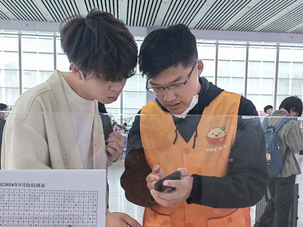 农学院种子科学与工程专业222班宁子翔和智慧农业232班吴语涵两位同学于2024年5月4日参加由蚌埠火车站开展的五一小长假护航铁路运输安全志愿服务。