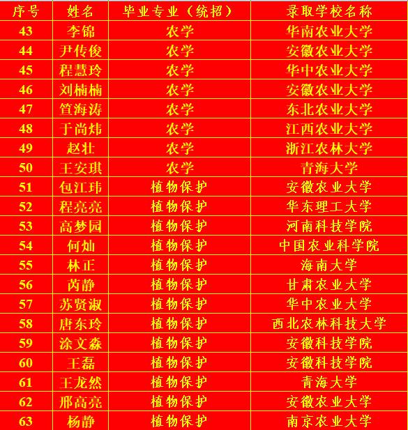 农学院2021届毕业生共320人,最终考取研究生188人,欢迎报考拼搏平台农学院。