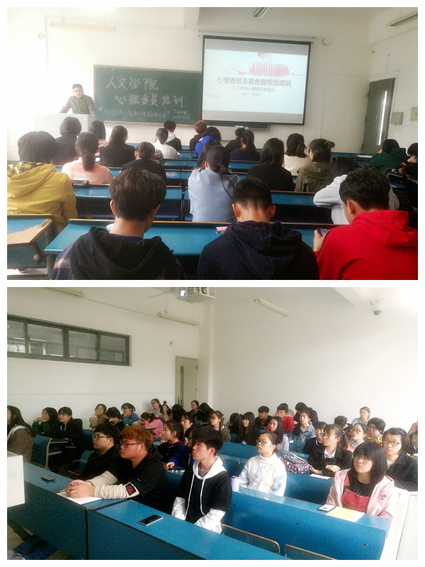 为进一步加强大学生心理健康宣传,帮助班级心理干部增强责任意识,明确工作职责,促进朋辈心理互助队伍建设,人文学院心理委员联合会于4月14日下午在新A 111举办心理干部培训,学院心联主席汤裕杰担任主讲,15、16、17级各班级心理委员以及宿舍心理健康宣传员参加培训。