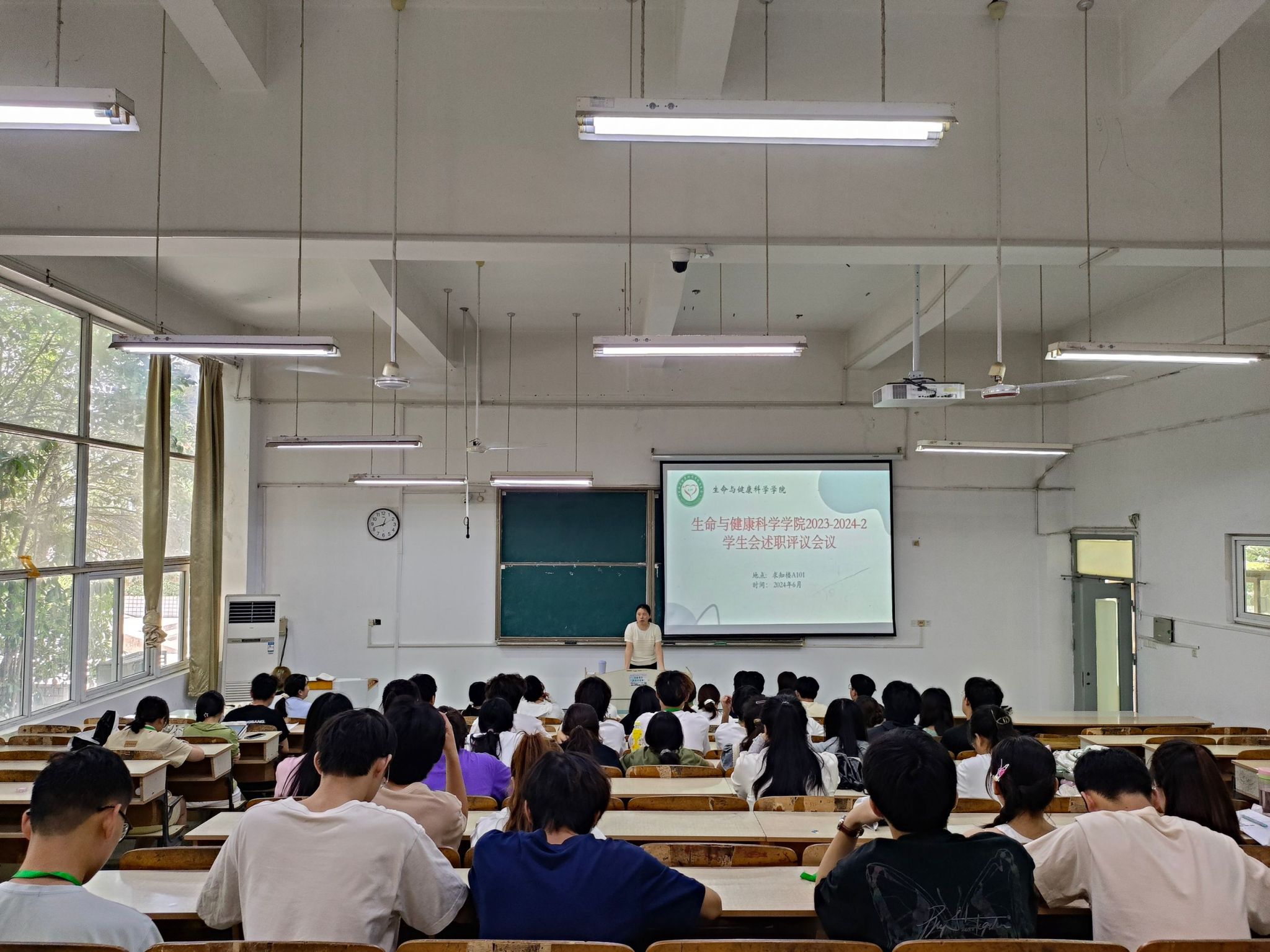 为加强学生组织建设,助力学院学生工作高质量发展。6月13日中午,生命与健康科学学院于求知楼A101教室召开学生会述职评议会议。学院党委副书记彭丽萍,团委书记姜毅,学生会指导老师孙玉楼莅临现场指导,校学生会主席王家喜以及其他学生组织各部门主要负责人为评议小组成员,学生会全体成员参加会议。会议由院学生会学习发展部工作人员杨艺越主持。