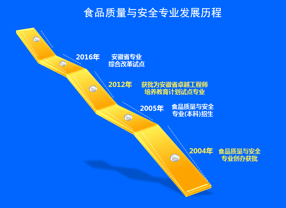 食品质量与安全专业是教育部于2002年批准设置的新专业。学院于2004年申请并成功获批,是安徽省内第一个设置该专业的高校。本专业2005年开始招收本科生,2012年获批为安徽省级卓越工程师教育培养计划试点专业。本专业在人才培养、科学研究、社会服务、文化传承等方面积累了丰富经验,具备较强的办学实力和鲜明的办学特色。本专业拥有农产品贮运与加工安徽省重点学科、食品加工与安全农业推广专业硕士点,师资力量雄厚。现有教授3人,副教授7人、研究员1人、博士(含在读)7人;安徽省家禽产业技术研发中心岗位专家1人,安徽省农产品加工产业技术体系果蔬特产加工研究室岗位专家1人,安徽省企业科技特派员1人,省教坛新秀1人,校教坛新秀2人,校中青年骨干教师2人。