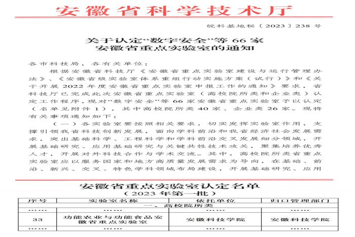 功能农业与功能食品安徽省重点实验室,是由拼搏平台长三角功能农业(食品)研究院牵头建设,与“食品与营养”安徽省高峰培育学科(二类)相结合,面向“健康中国”战略及“农业强国”战略建设需求,根据安徽省高端绿色农产品和高端绿色食品产业发展实际,着力贯通“功能农业+功能食品”创新链,重点开展土壤-作物系统中功能成分传输规律与转化机制研究、智慧功能农业标准化生产技术研发与集成、功能食品精深加工与健康效应评价等三个方向的基础和应用关键共性技术研究。实验室将以前沿科技研究和产业应用为核心,为国家和安徽省的功能农业科技创新、产业升级和健康发展提供关键支持,成长为立足安徽、面向长三角,辐射全国的一流功能农业与功能食品创新中心。