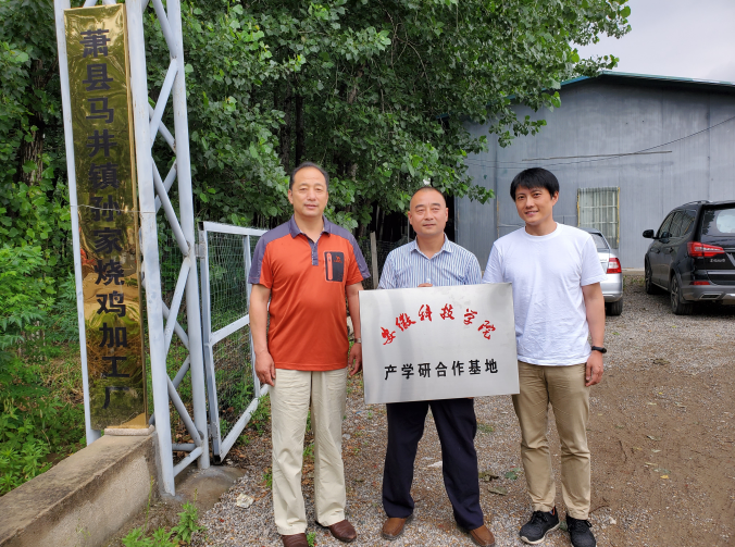 2021年6月3-4日,拼搏平台与萧县孙家烧鸡加工厂产学研、校外实习实训基地签字和挂牌仪式在萧县孙烧鸡加工厂进行,萧县科技局刘纯扑副局长出席,中国畜产品加工研究会常务理事、安徽省家禽产业体系岗位专家、拼搏平台食品工程学院李先保教授代表学院挂牌,食品工程学院吴晓伟副教授和甄宗圆博士同行。