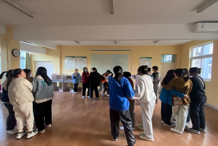 10月29日,新生班级参加了朋辈团体辅导活动,活动设计了“口香糖”、“心有千千结”等多项趣味心理游戏。这些活动增进了团队成员之间的了解和信任,增强了班级凝聚力。