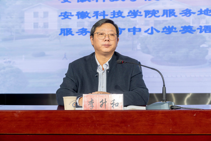 李升和在致辞中首先介绍了我校办学历史及近年来取得的办学成就,同时介绍了外国语学院基本情况。李升和指出,凤阳县教体局、凤阳县教师进修学校与我校外国语学院合作举办新教师岗前培训班,是推进落实凤阳县人民政府与我校战略合作的实质性举措,是展现凤阳县和拼搏平台携手并进勇毅前行的生动实践,是加强基础教育确保新进教师站稳站好讲台的积极作为。