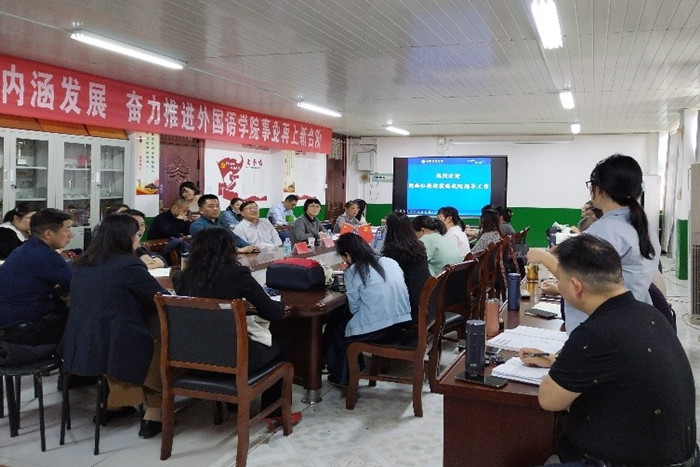 2023年4月17日下午,外国语学院邀请南京大学陈新仁教授在学院会议室开展学术交流活动,陈教授为学院全体教师做了题为“外语教学研究的选题与论文写作”的学术讲座,外语教学与研究出版社经理王学松应邀列席。讲座由外国语学院院长刘萍主持,学院全体党政领导出席,所有下午无课教师认真聆听了学术讲座。
