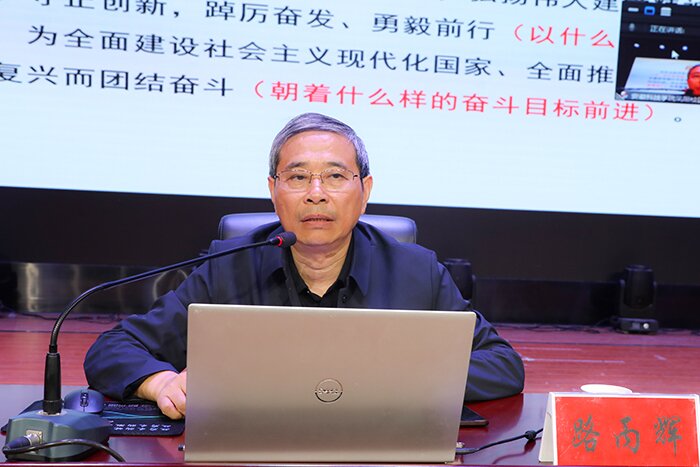 5月9日下午,学校党委举办主题教育读书班暨理论学习中心组(扩大)学习会。党的二十大代表、安徽师范大学马克思主义学院路丙辉教授应邀来校作专题辅导报告。校领导李震、黄远友出席会议。报告会由黄远友主持。